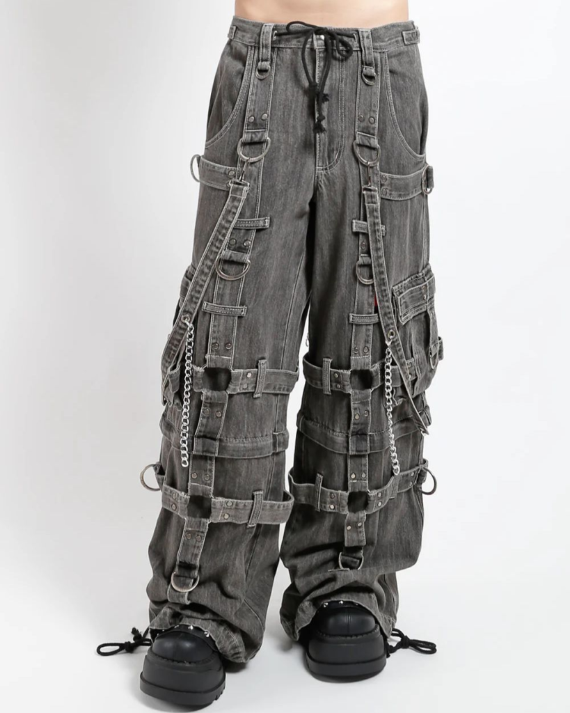 Adding studs or choosing skull detailing strap pants transforms a simple outfit into a standout look. Ring strap accents provide functional style, creating a unique, alternative aesthetic that is instantly recognizable. Whether you’re at a concert, street event, or hanging out with friends, these pants elevate your style game.