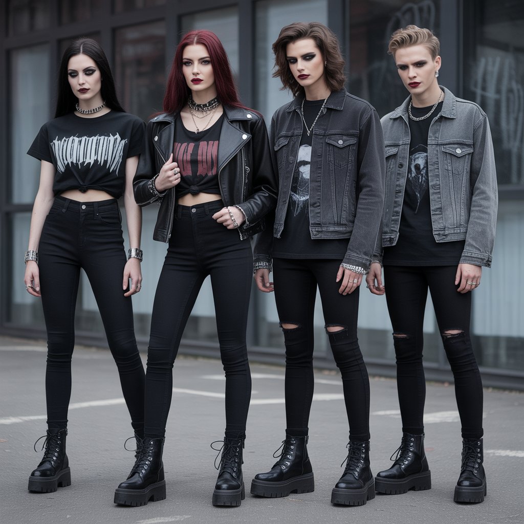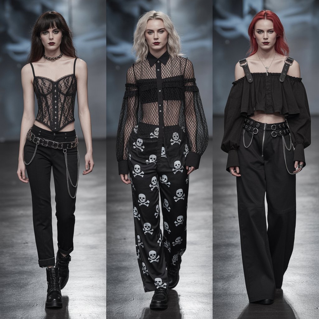 Goth Streetwear: Try cargo-style bondage trousers with fishnets, a black crop top, and silver D-rings accents for that bold, dark aesthetic.